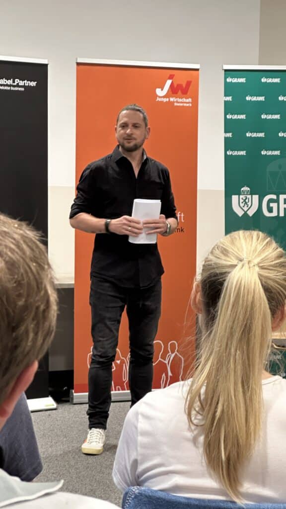 Kerstin eröffnete den Abend mit einer herzlichen Begrüßung und hob die Bedeutung der Unterstützung durch die Hauptsponsoren der Jungen Wirtschaft Steiermark hervor.