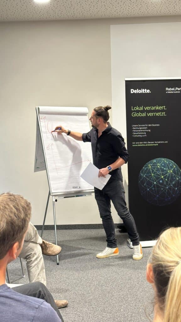 Besonders interessant fand ich es im Gespräch mit Geo, dass sein Angebot zum „Continuous Improvment“ auch für Jungunternehmer:innen sich in einem leistbaren Spektrum befindet. Erstbesprechung sowie kontinuierliche Coachings, Schulungen, Unterstützungen, … bzw. das was das Unternehmen zur kontinuierlichen Weiterentwicklung benötigt wird damit begleitet.